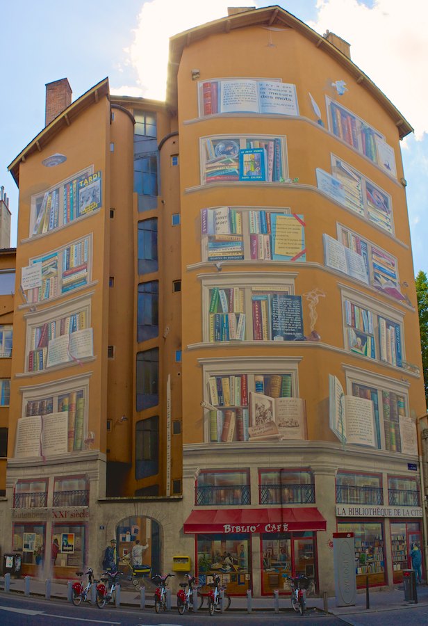 Viele der Wandmalereien in Lyon sind von der Künstlergruppe CitéCréation gestaltet. Im Stadtteil Croix-Rousse gibt es aber auch kleinere, wohl eher „inoffizielle“ Wandmalereien, zum Beispiel der Eingang des „Au Temps Perdu“.
