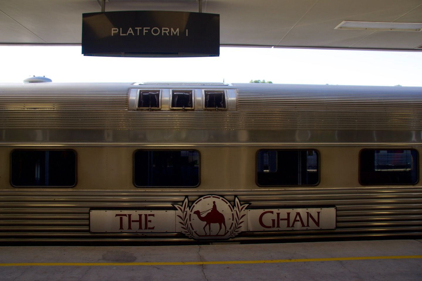 Die Reise beginnt im Parklands Terminal, da der Ghan ebenso wie der Overland und der ebenfalls legendäre Indian Pacific von Great Southern Railways betrieben wird und über normalspurige Strecken verkehrt. Zur Abfahrtszeit des Ghan ist das Terminal voll, die Passagiere checken ihr Gepäck ein, es wird Sekt ausgeschenkt und es gibt Live-Musik. Ein Adler ist das Symbol für den Indian Pacific, der den Kontinent von Perth im Westen nach Sydney im Osten durchfährt.