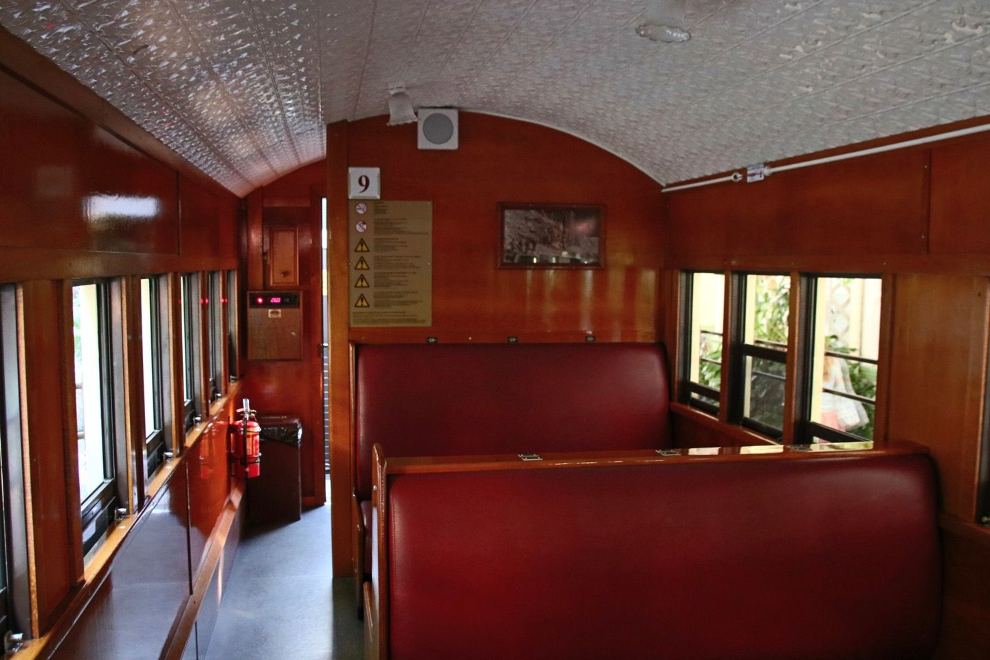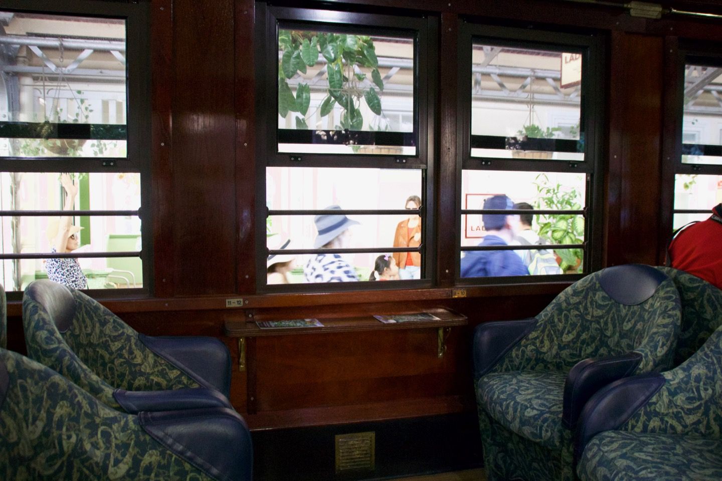 Der Zug der Kuranda Scenic Railway sieht in der Holzklasse etwas ungemütlich, in der ersten Klasse dafür plüschig aus. In der ersten Klasse („Gold Class“) werden im Preis inbegriffen Snacks und Wein oder sonstige Getränke serviert.
