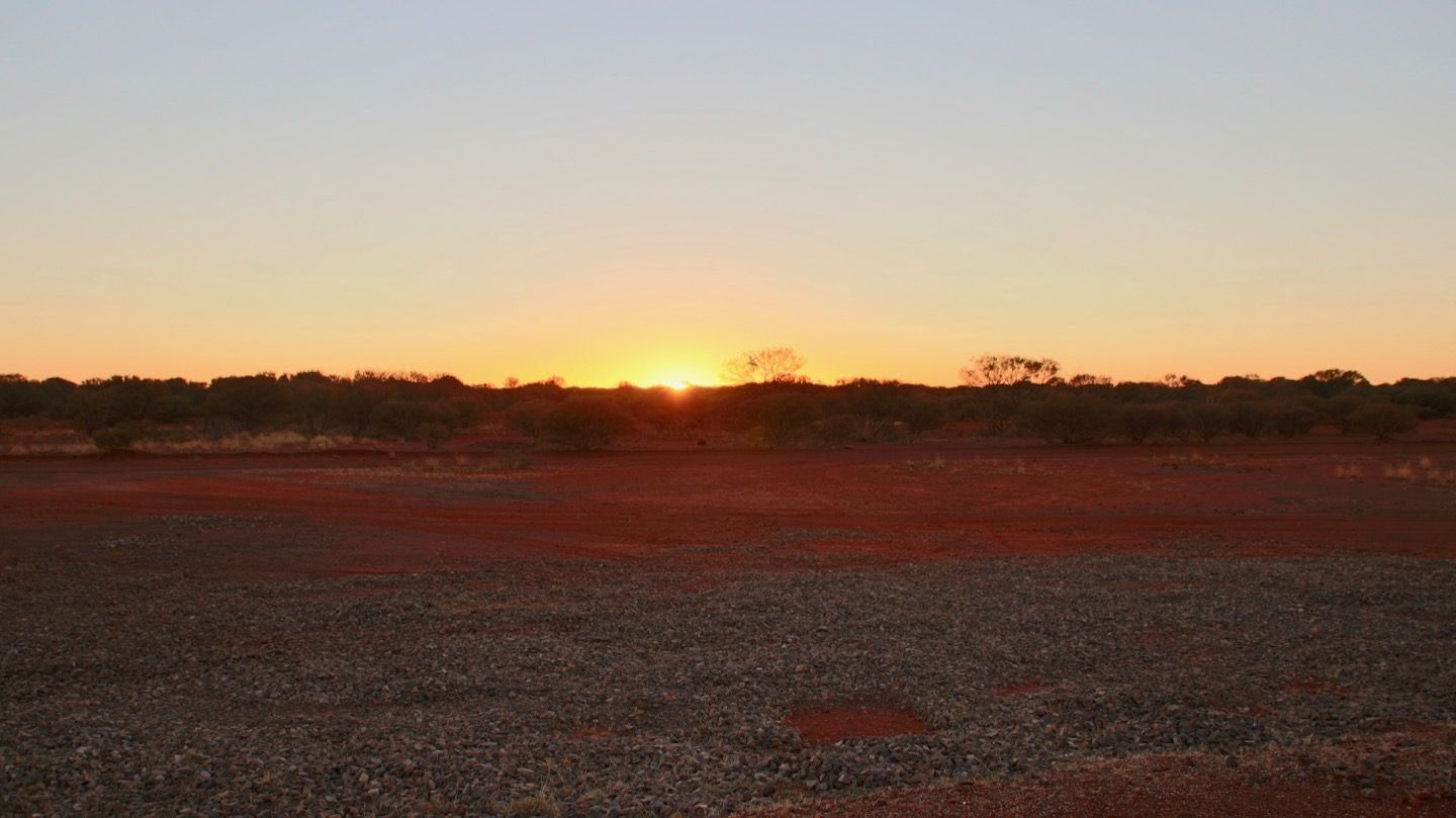 … während man auf den Sonnenaufgang im roten Australien wartet.