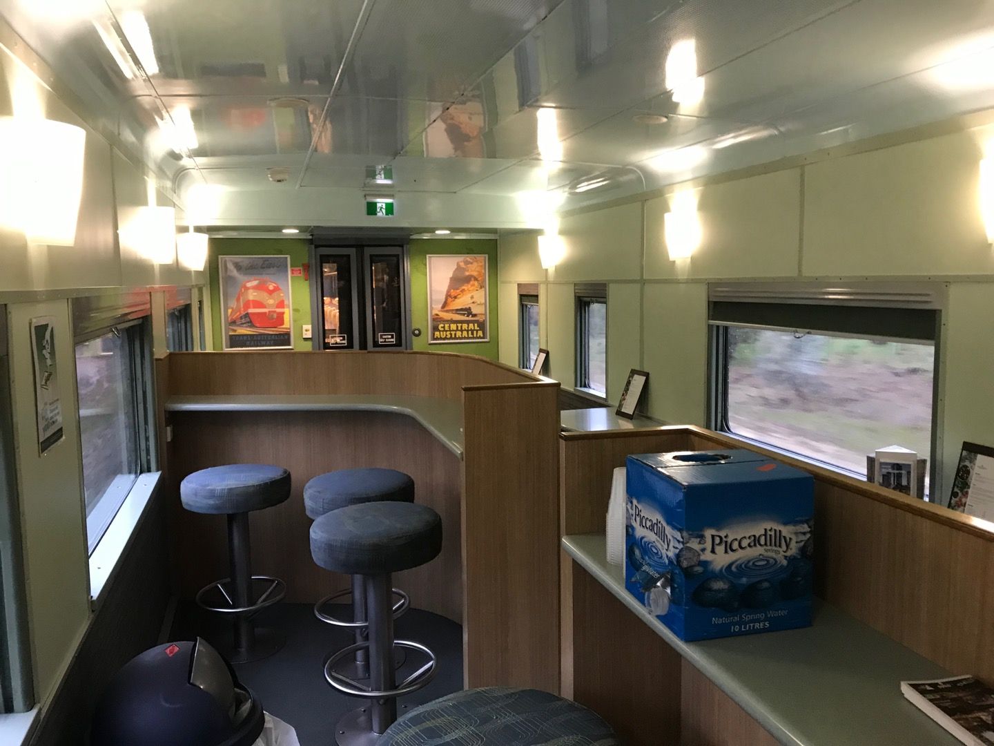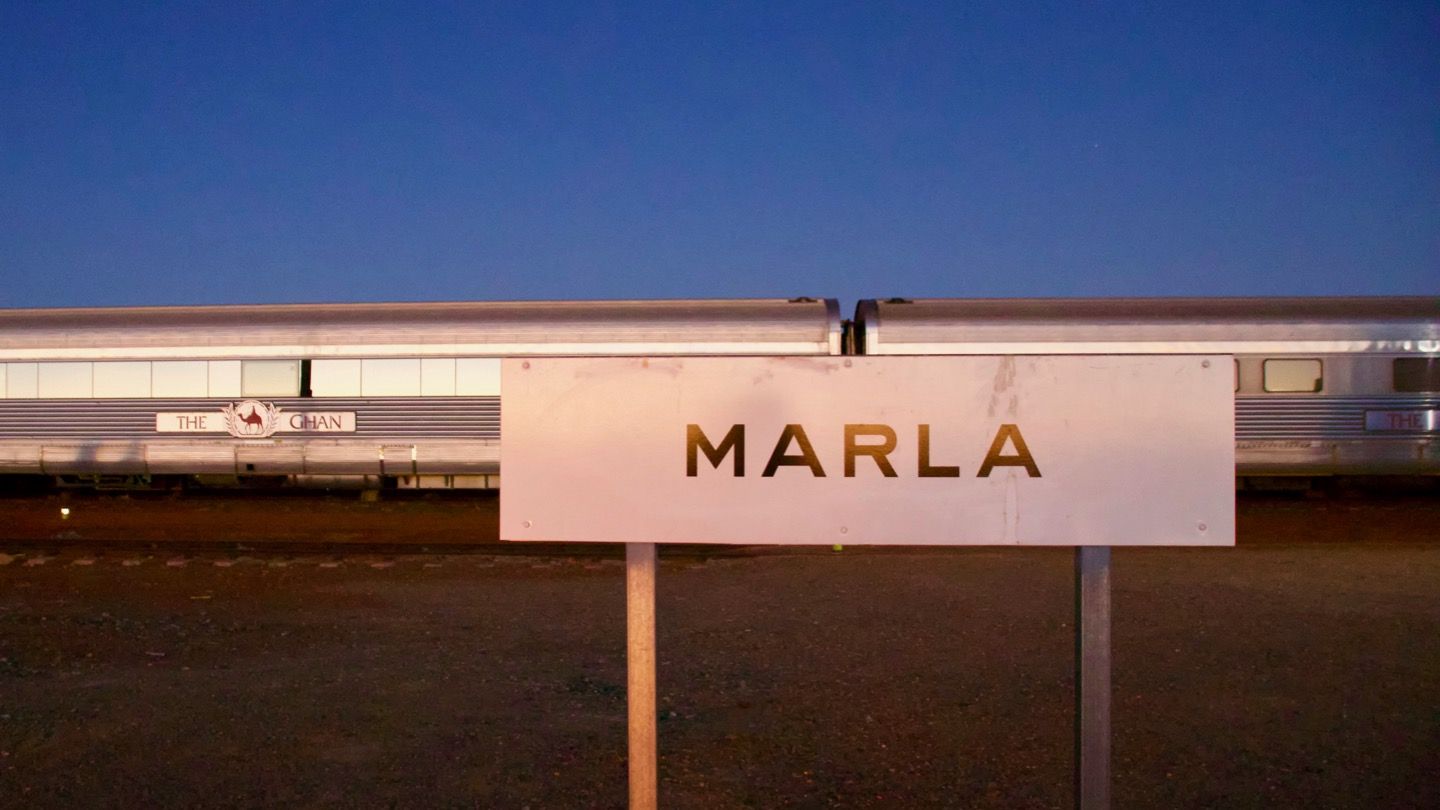 Der Ghan ist ganz klar auf den touristischen Betrieb ausgelegt und eine Fahrt mit diesem Zug gleicht von daher eher einen Schienenkreuzfahrt. Der erste Zwischenstopp ist auch in keiner Stadt, sondern sozusagen mitten im Nichts, in Marla.