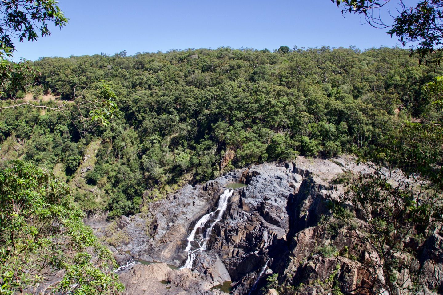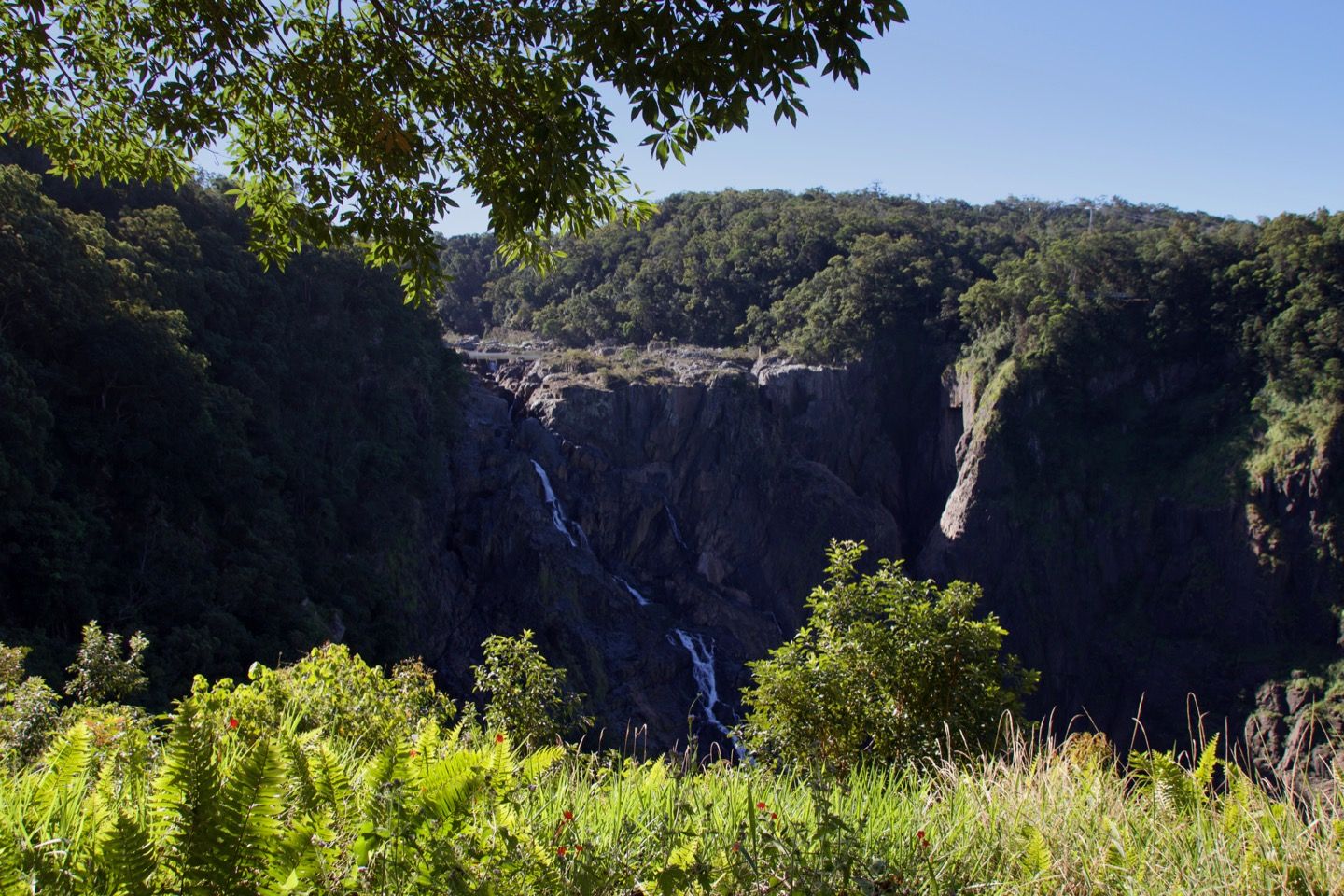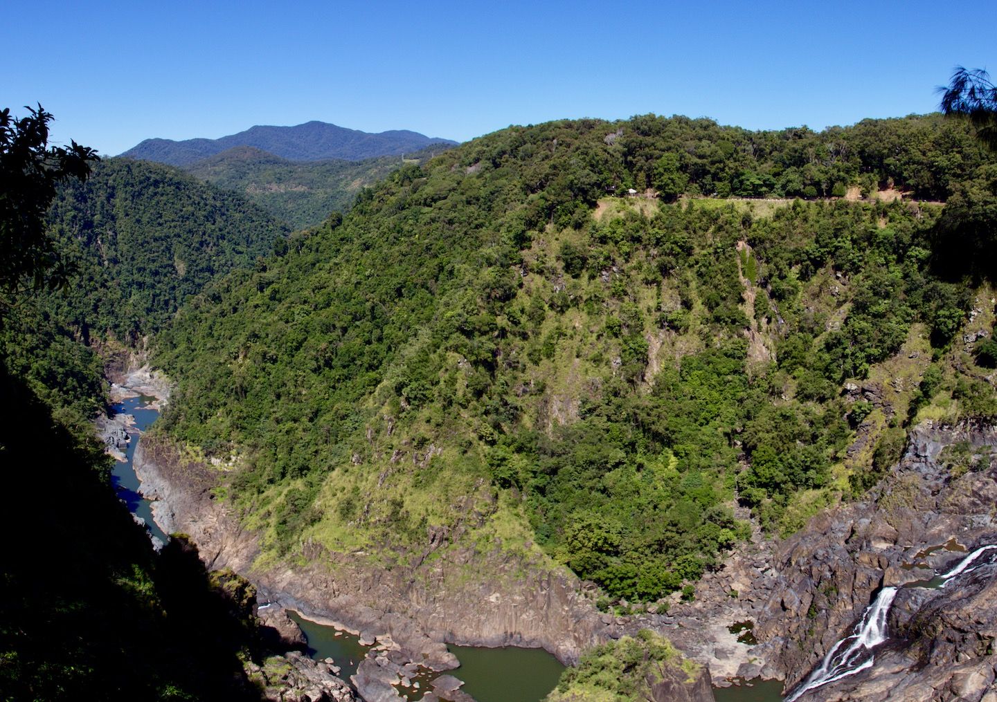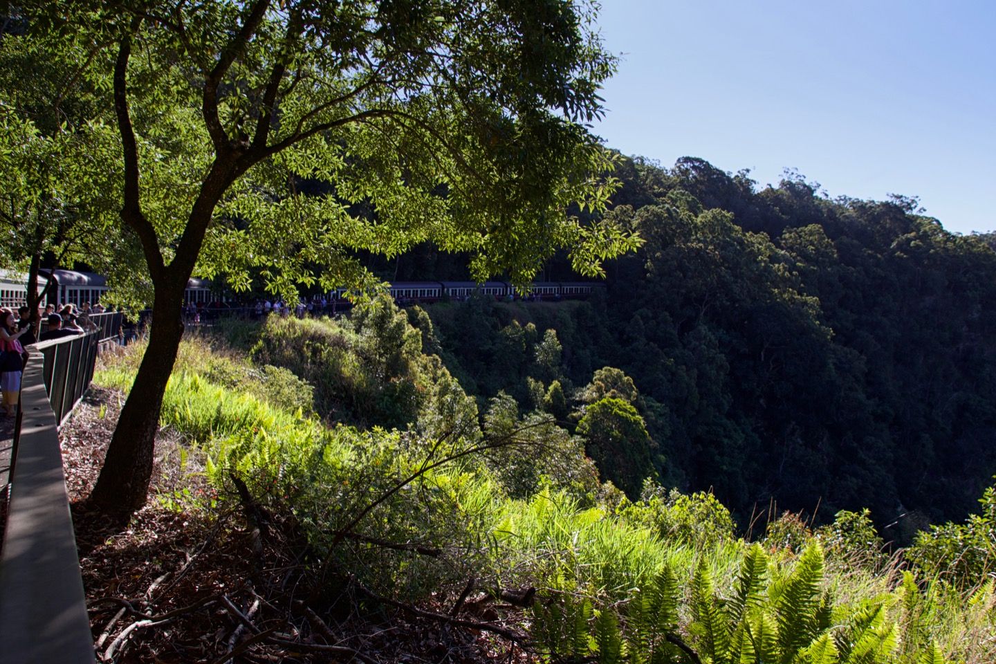 Beim Zwischenstopp bei den Barron Falls eröffnet sich der Blick in die umgekehrte Richtung zur Seilbahn.