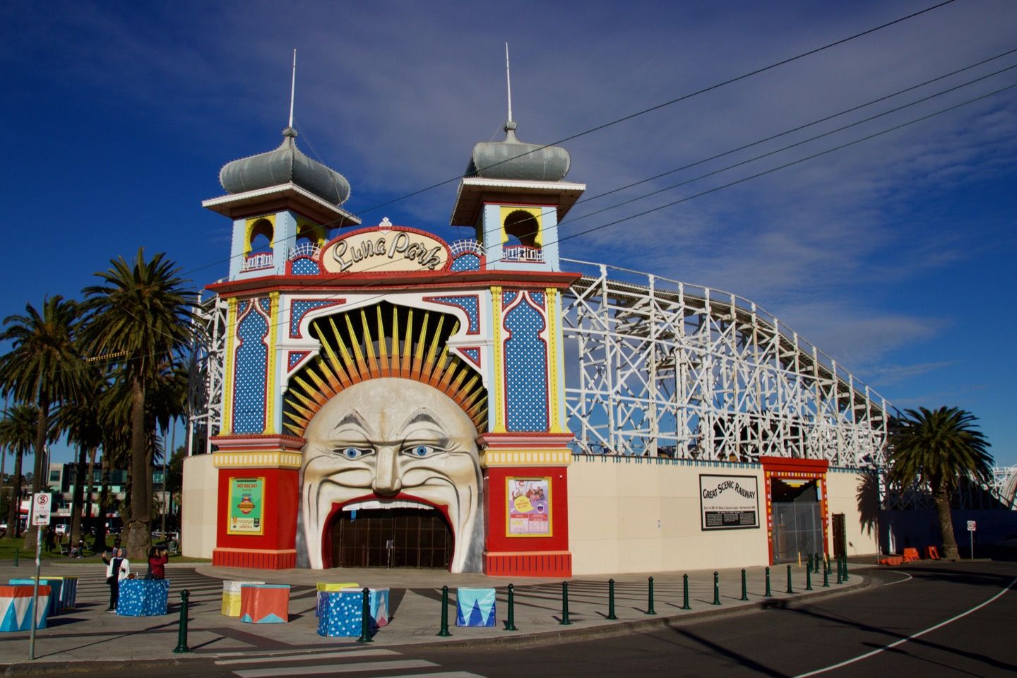 Im dortigen Freizeitpark des Grauens „Luna Park“ gibt es angeblich eine „Great Scenic Railway“, die allerdings gerade außer Betrieb war. Ich glaube, wir hätten auch so auf einen Besuch verzichtet. Aber sonst ist es in St. Kilda eigentlich sehr schön.