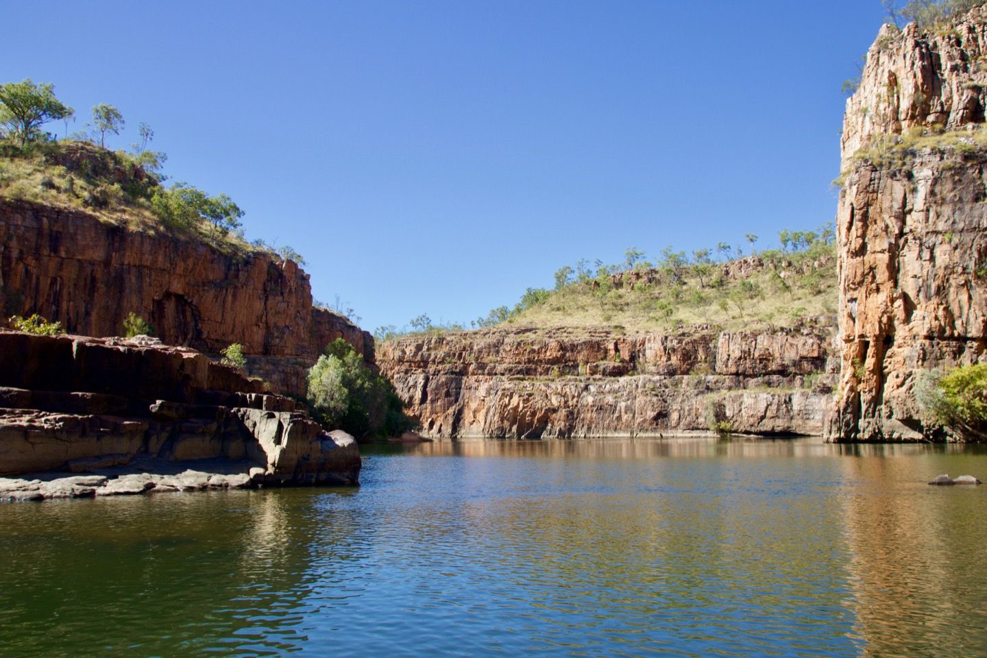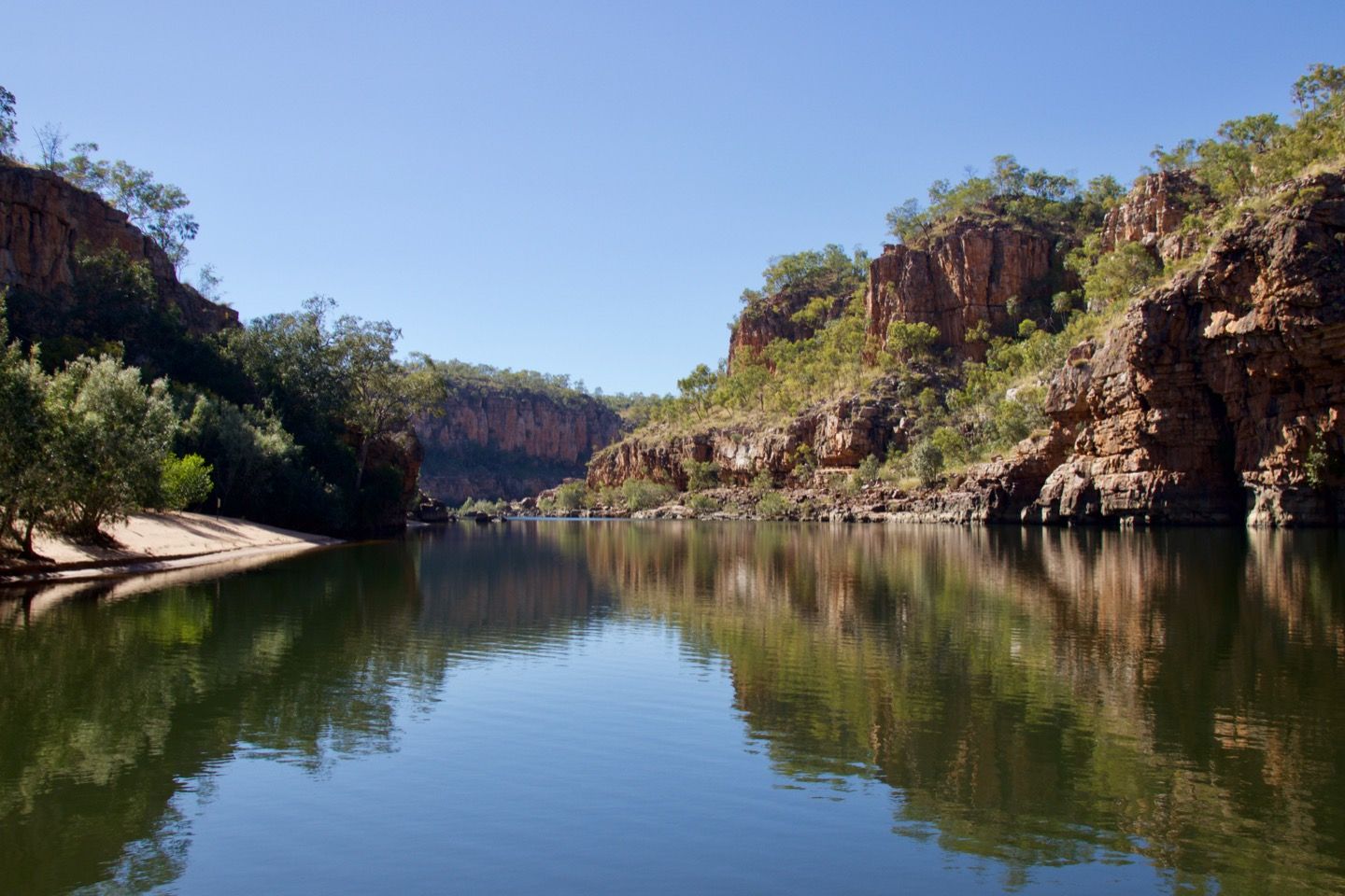 Ein weiterer Zwischenhalt des Ghan ist, am dritten Tag, Katherine. Auch hier gibt es einen „Landausflug“ in die Natur, in diesem Fall die Nitmiluk Gorge. Dort gibt es nicht nur eine beeindruckende Schlucht, sondern auch antike Wandmalereien und Krokodile.