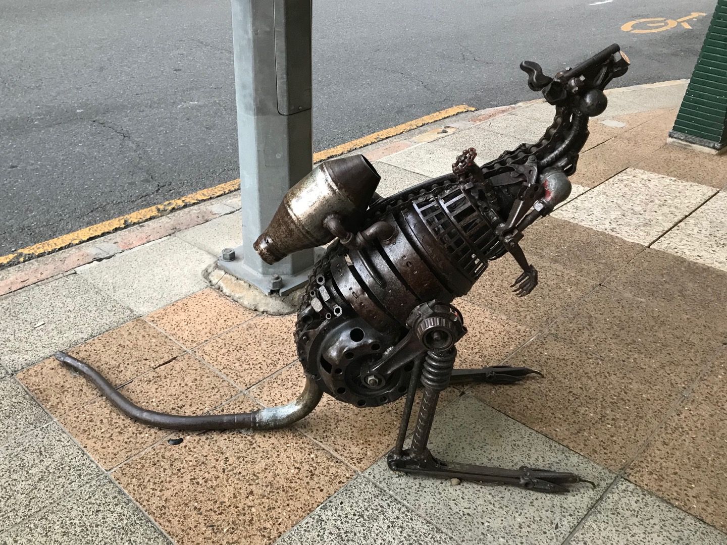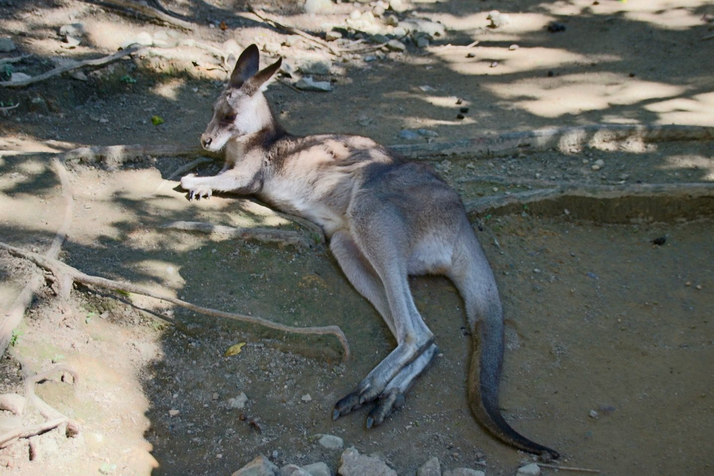 Kuranda selbst ist ein Touri-Dorf. Vielleicht schreibt Anke ja noch mal was über die Tiere, denen wir dort begegnet sind. Ich begnüge mich mal mit einem Tierbild von einem Känguru, das das tut, was Kängurus am besten können und am liebsten machen: Chillen. Und einem komischen Huhn, welches den Bahnhof von Kuranda bewohnt.