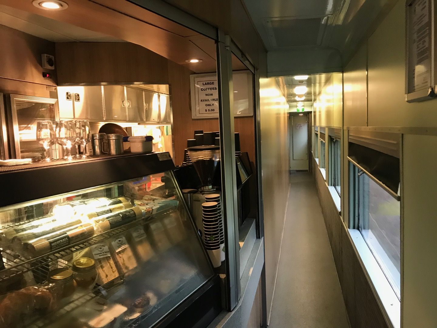 Der Zug ist bewirtschaftet, das Essen ist allerdings auch in der 1. Klasse nicht inkludiert, aber verhältnismäßig günstig. Das Mittag- und Abendessen wurde auf Vorbestellung (vermutlich von außen an den Zug geliefert und dann) an den Platz gebracht. Dazwischen kann man sich im Buffetwagen versorgen.