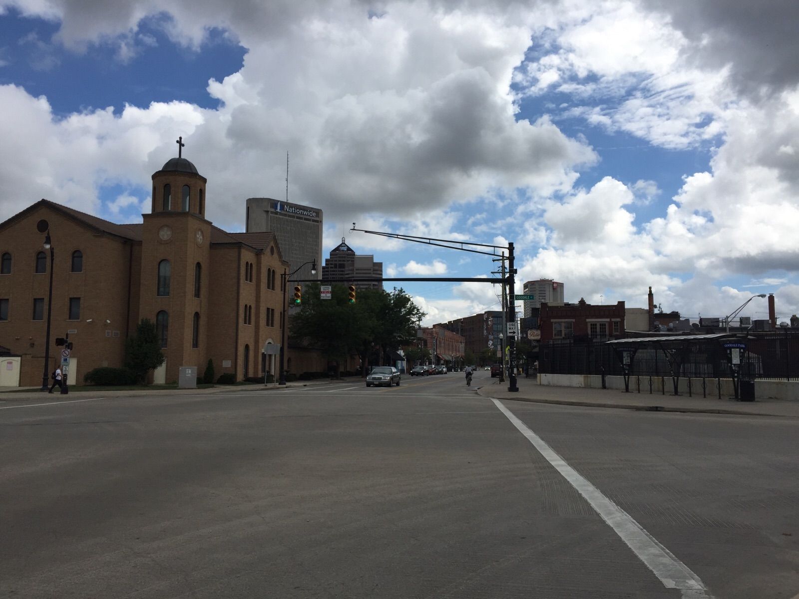 Wenn man in Frankfurt wohnt, ist man enge Straßen, Verkehr und enge Wohnungen gewohnt. Columbus bietet hier einen sehr starken Kontrast. Die Straßen sind unglaublich breit und es gibt sehr wenig Autoverkehr. Eigentlich könnte man zu jederzeit einfach auf die Straße taumeln, ohne dass man auf ein Auto treffen würde.