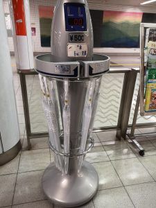 Sollte man beim Verlassen der U-Bahn feststellen, dass es regnet kann man hier noch mal schnell für 500 yen (ca. 4,60 Euro) einen Schirm kaufen.