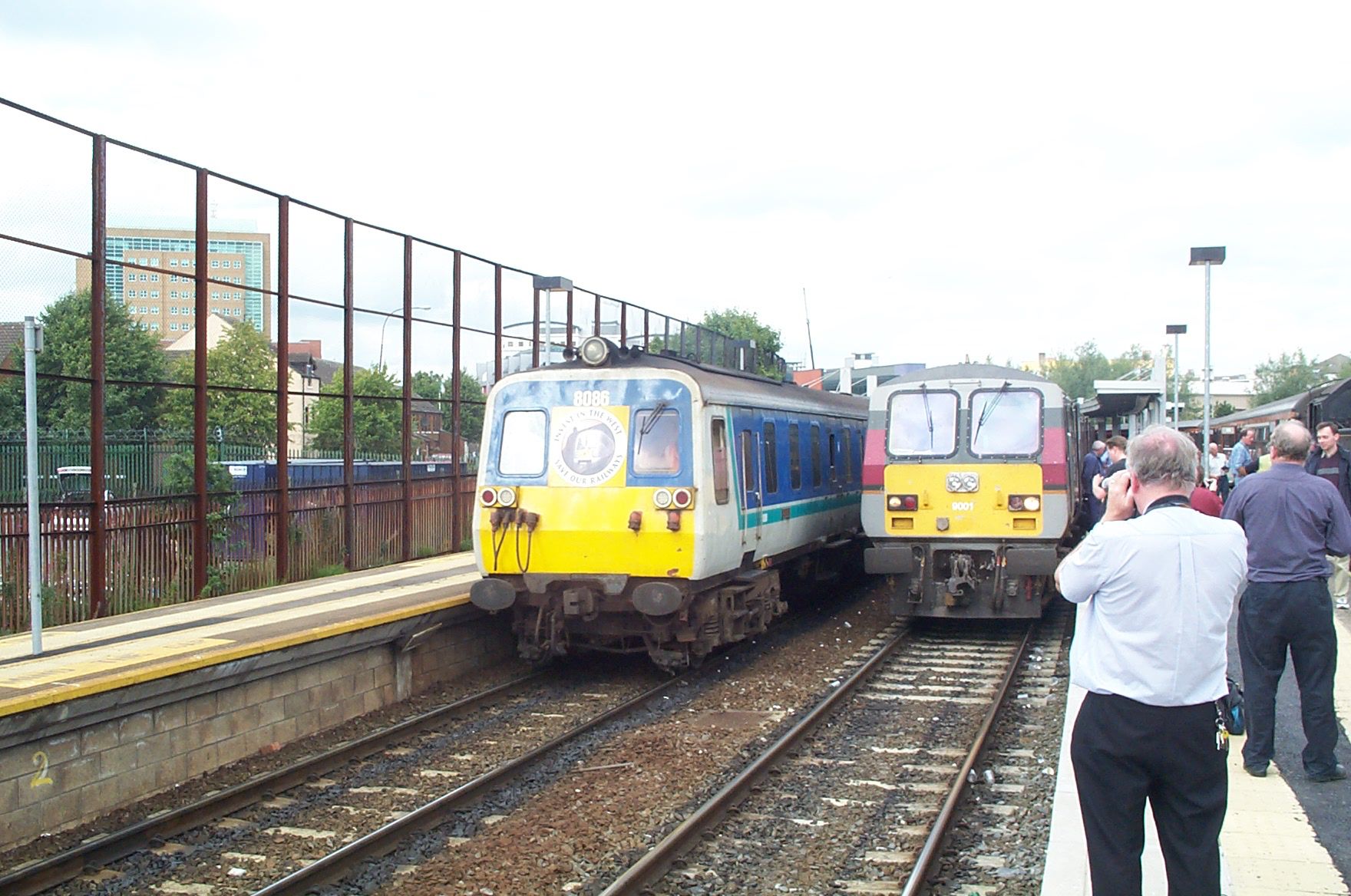 In Belfast Central (heute Lanyon Place) nehmen wir für die Fahrt nach Dublin die Passagiere wieder auf, die sich die Stadt angesehen haben. Am Gleis nebenan steht ein normaler Enterprise nach Dublin mit Steuerwagen voraus.