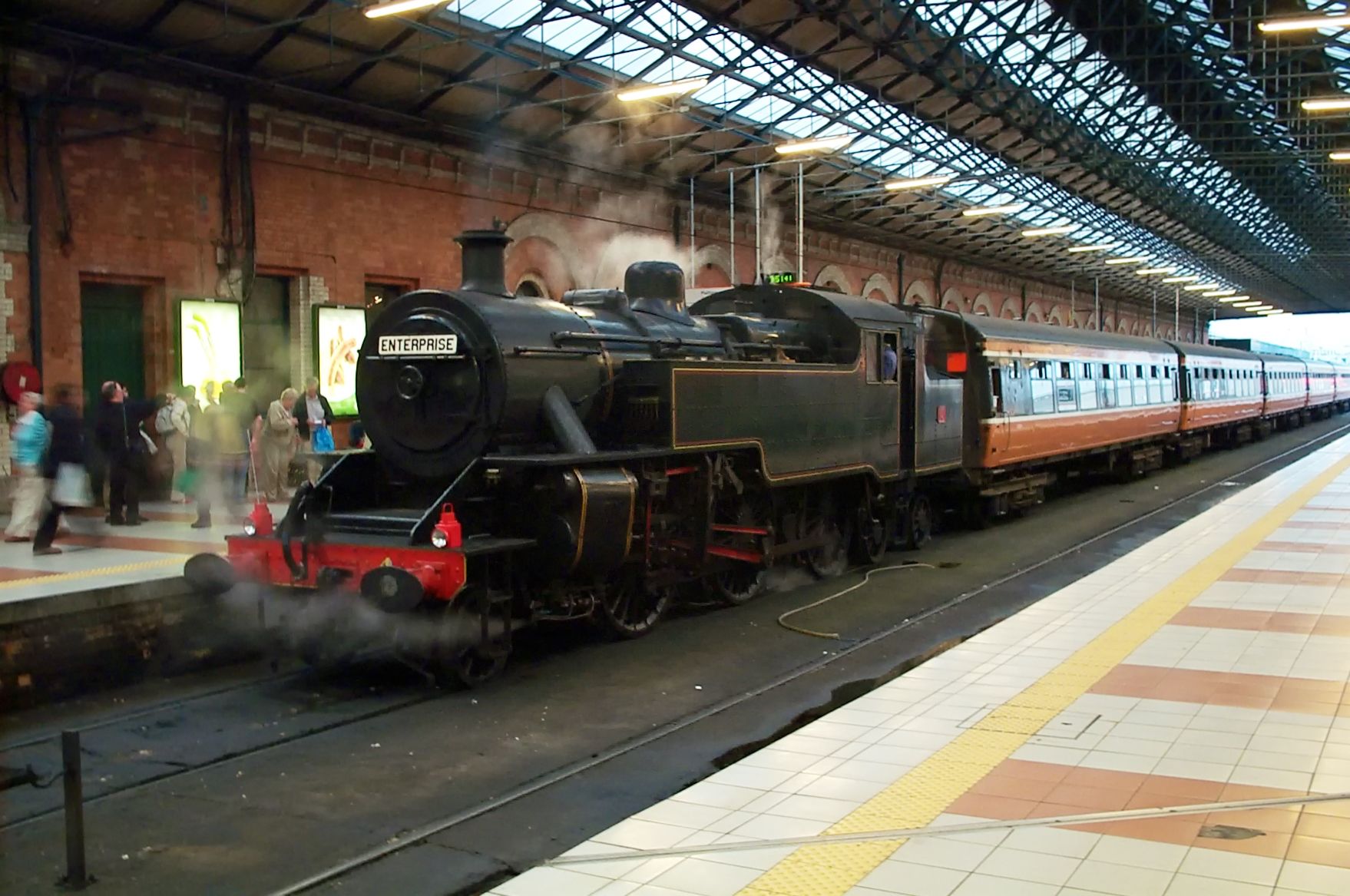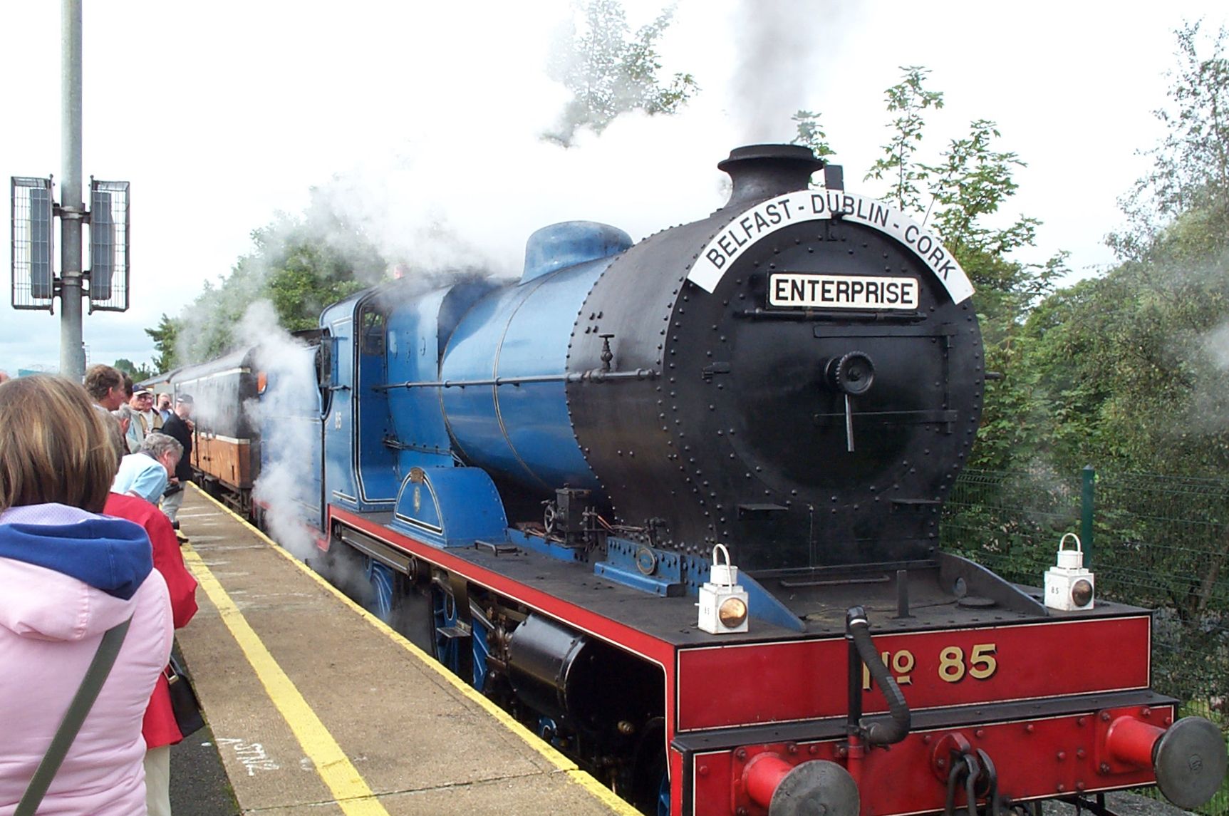 Als „Enterprise“ werden auch heute noch die zweistündlich verkehrenden Expresszüge Dublin-Belfast bezeichnet. Eine Durchbindung nach Cork gibt es allerdings nicht. Wer von Belfast nach Cork will, muss in Dublin nicht nur den Zug, sondern auch den Bahnhof wechseln, von der Connolly- zur am anderen Ende der Innenstadt gelegenen Heuston-Station. Seit September 2004 kann man das mit der modernen Straßenbahn „Luas“ tun, zum Zeitpunkt der Aufnahme musste man noch den Bus nehmen.