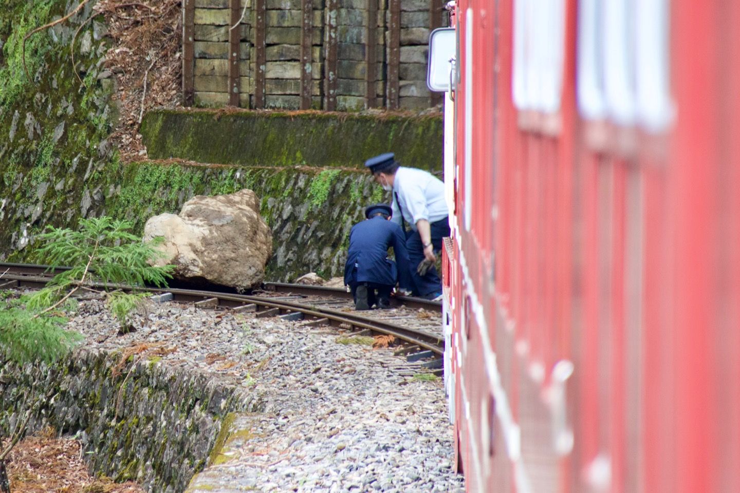 Viel weiter ging die Fahrt dann auch nicht mehr. Der Grund erschloss sich uns zunächst nicht, da die Durchsagen nur auf Japanisch erfolgten. Wir waren an diesem Tag auch anscheinend die einzigen Ausländer im Zug. Eine Mitreisende übersetzte dann für uns, dass ein „big stone on the railroad“ der Grund wäre.