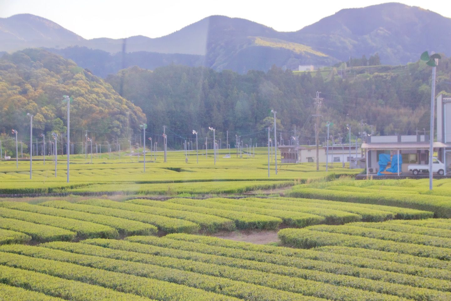 Aus diesem Zug konnten wir dann noch mal die Teefelder sehen. Auf diesem durchs Zugfenster aufgenommene Bild sieht man noch, dass dem Tee mit Ventilatoren in großem Stil Luft zugefächelt wird.