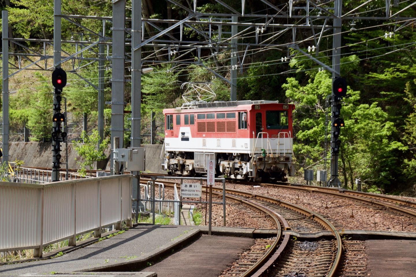 Direkt nach Ankunft im Bahnhof Nagashima Dam wird die E-Lok wieder abgekuppelt. Sie übernimmt den wenig später eintreffenden Gegenzug zur Talfahrt.