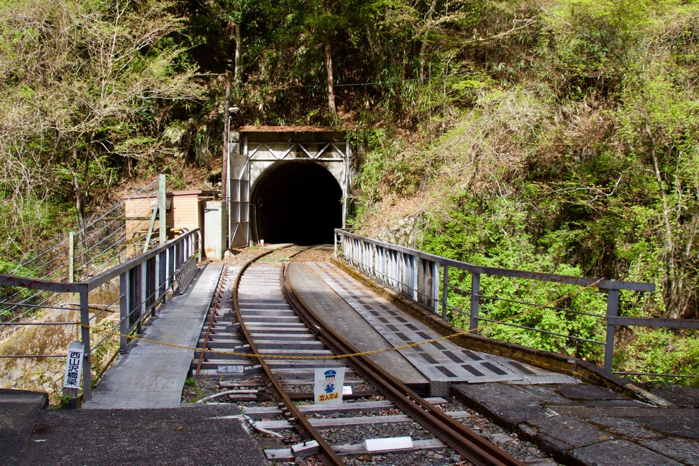 Das Gleis rechts führt in einen Tunnel und wird für den Personenverkehr nicht mehr genutzt. Früher folgte nach etwa einem Kilometer noch eine Station, die aber schon lange stillgelegt ist.