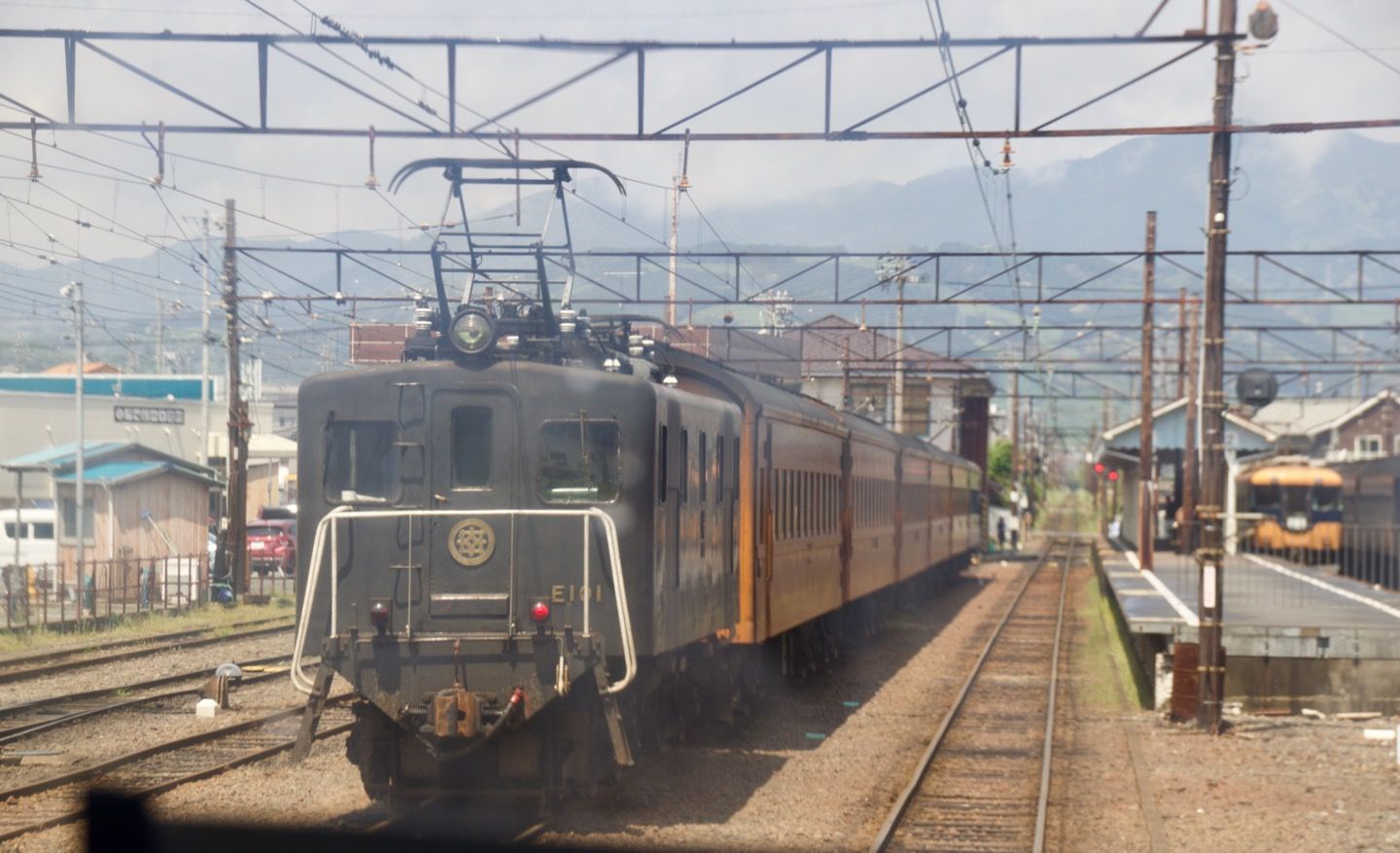 Und noch ein wenig später erreichen wir den Bahnhof Abt-Ichishiro, wo diese E-Lok bereit steht.