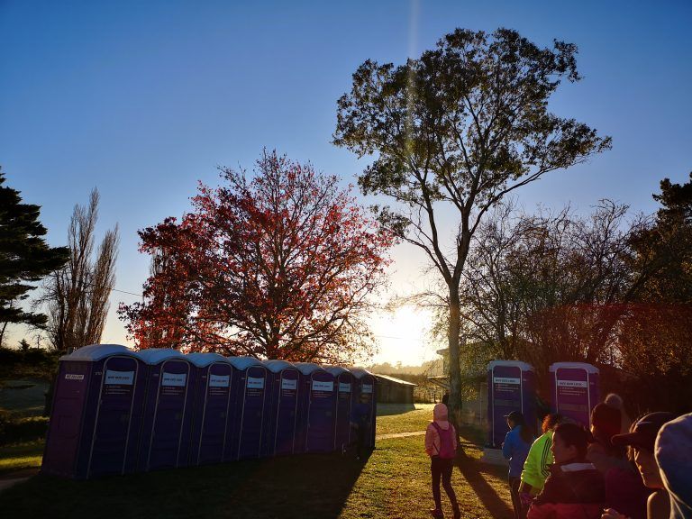 Schlange vor den Dixi-Klos vor dem Start (15 min nach Startschuss)