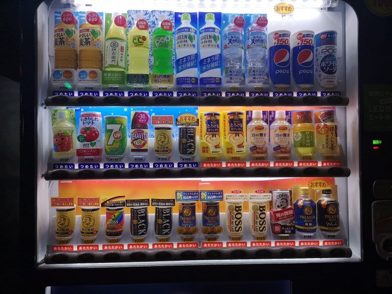 Ok, das ist für einen Europäer jetzt nichts total Neues, aber diese Automaten gibt es hier wirklich und wortwörtlich an jeder Ecke und häufig auch noch dazwischen. Dort können die üblichen Kaltgetränke gekauft werden und häufig auch erwärmte Dosen mit veschiedenen Kaffeegemischen. Blau sind die kalten Getränke und rot die warmen.