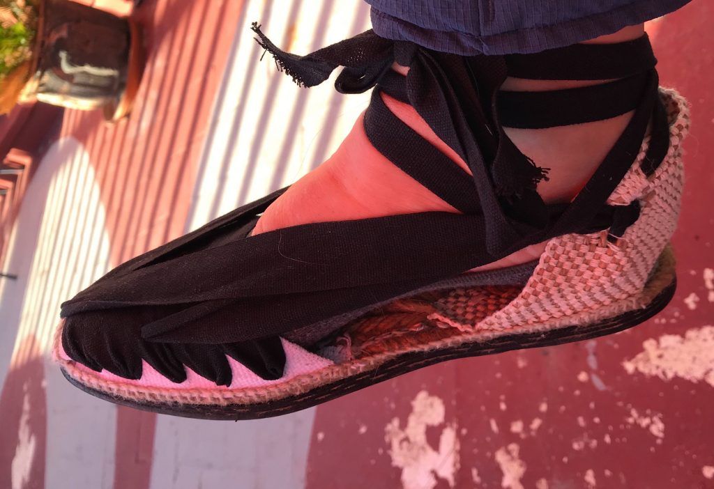 Dazu passend habe ich in einem Laden neben unserem Vereinshaus traditionell handgemachte katalanische Espardenyas (Schuhe aus Espartogras) gekauft: