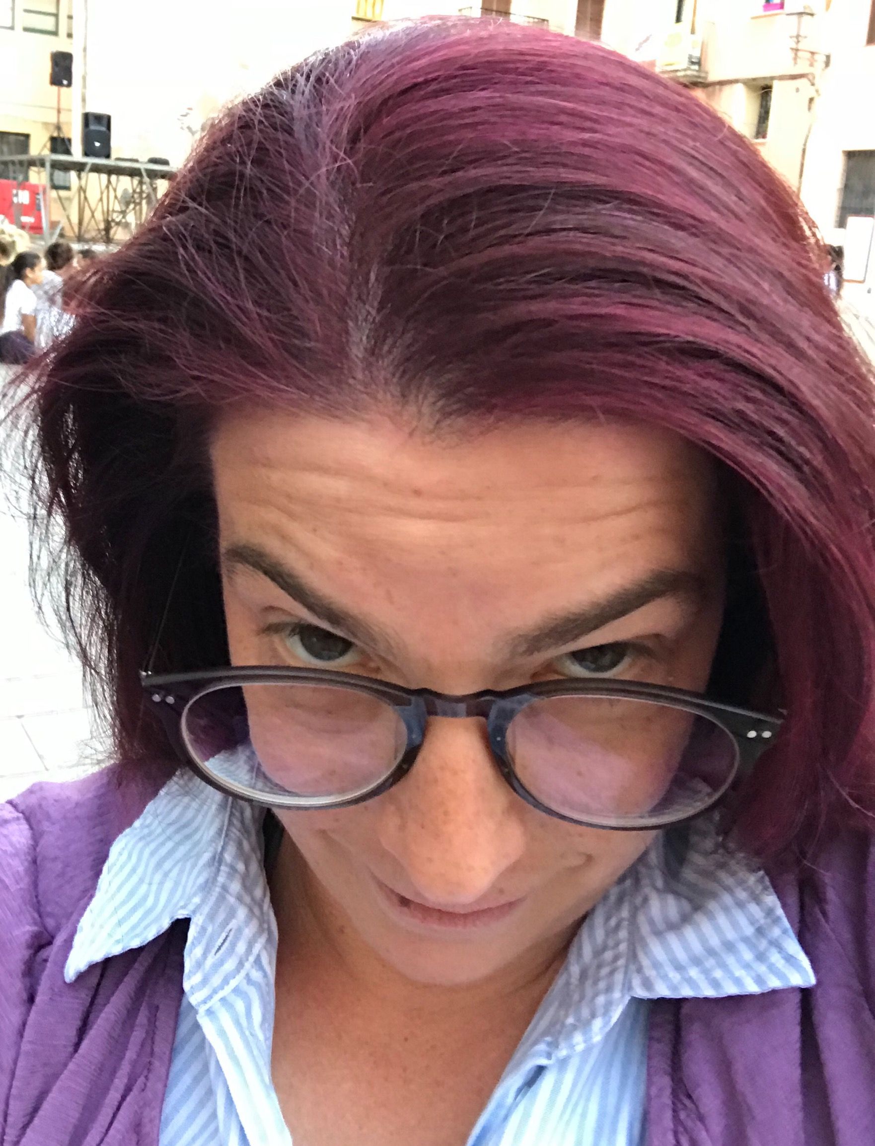 Passend zur Farbe unseres Vereins habe ich das schicke Grau meiner Haare mit Lila Haarfarbe überdeckt.