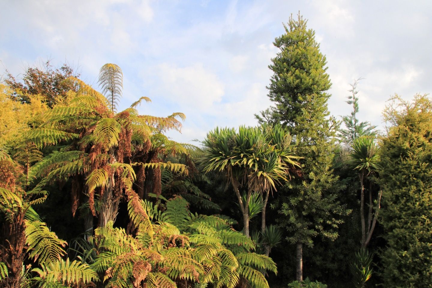 Garten unseres AirBnB mit Silberfarn und Kauri-Baum