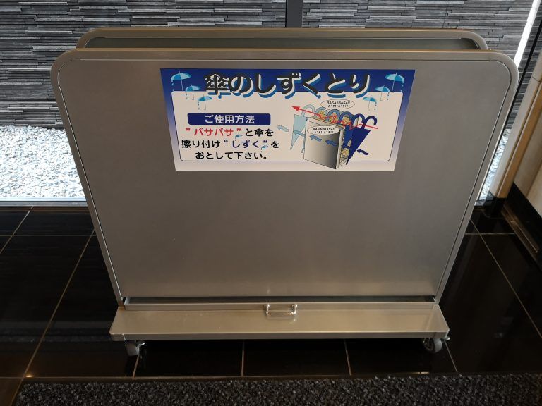 Kommt man dann mit dem nassen Schirm ins Hotel, kann man ihn hier trocknen.