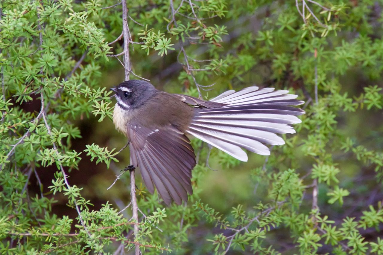 Die allgegenwärtigen Fantails lassen sich von dem Geruch nicht beeindrucken, fliegen fröhlich um einen herum und klappen am und zu mal ihren namensgebenden Fächerschwanz aus.