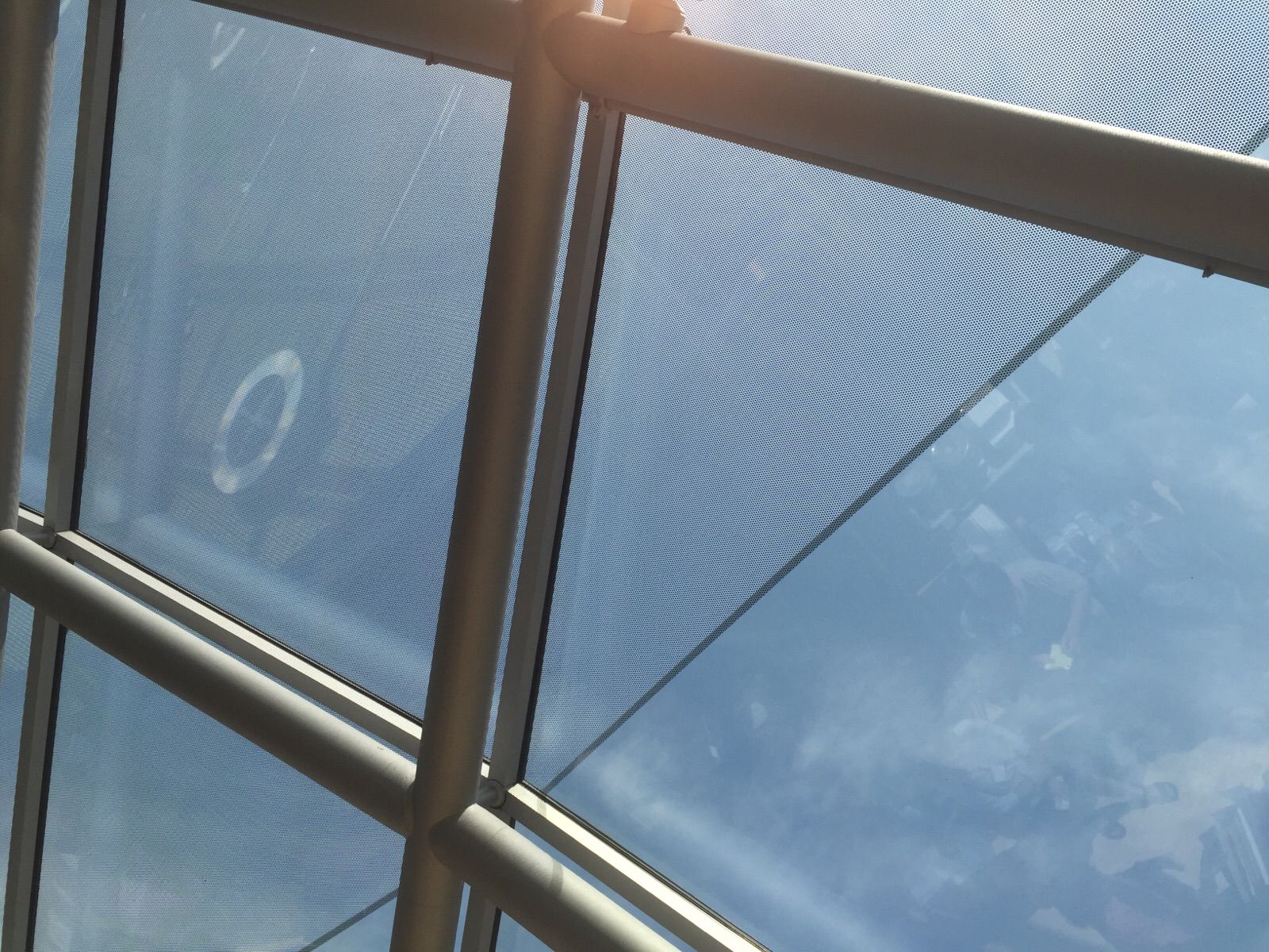Trotz des Glases ist es darunter nicht konstant überhitzt. Das liegt natürlich zum einen an der Klimaanlage, aber zum anderen auch an der nach oben zunehmenden Beschichtung der Gläser: